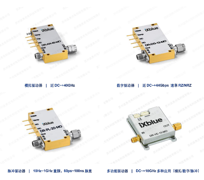 在电光调制器的使用过程中,无论是信号源还是码型发生器所输出的功率(电压Vpp)均会随着RF射频频率的增加而下降(降低),由于铌酸锂电光调制器针对于模拟、数字、脉冲等应用,大部分应用需要达到Vπ甚至2Vπ以上,我们在使用过程中就会需要使用到射频放大驱动器(电光调制器驱动器)的配合使用,已保障我们的调制达到最佳使用效果。法国iXblue提供丰富的电光调制器驱动器产品,用于满足市面上常用的模拟调制、数字通讯、量子应用、脉冲调制、光谱展宽等几乎所有的常见应用。