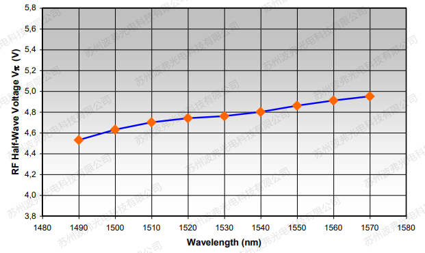 上图给出了半波电压随激光光源波长的变化。