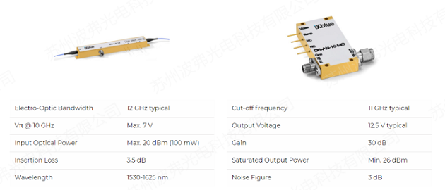 DR-VE-10-MO射频驱动器,是设计用于驱动脉冲、模拟或数字应用的铌酸锂电光调制器的放大器模块,以产生不失真的光脉冲。在BOTDA系统中,电脉冲信号的占空比很长。为了产生清晰的光脉冲,在保持高消光比ER的同时,具有锐利的边缘、持续的高低电平以及无overshoot,BOTDA光脉冲信号产生需要具有合适特性的特定射频放大器,如DR-VE-10-MO。