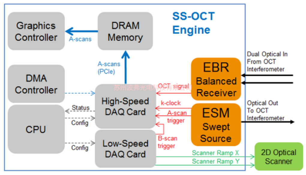 xingkong星空光电科技有限公司供应的瑞士EXALOS扫频源OCT工作站(EOE)是一个完整的SS-OCT系统,包含扫频源模块,商用PC中基于FPGA的数据采集卡,以及能够以A扫描速率实现实时OCT信号采集和处理的专有软件高达100 kHz。 由于基于FPGA的信号处理,A扫描以确定的延迟生成,并通过PCI-Express接口连续流式传输到主机PC,从而实现视频速率B扫描成像。