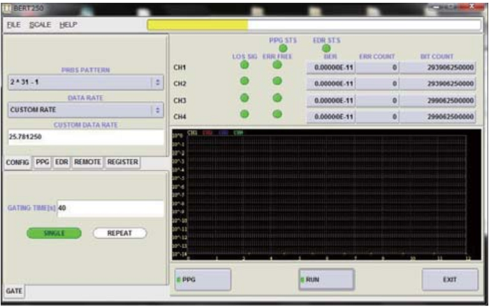 PPG-250C-x-4CH内置超稳定、低抖动时钟,EDR-250C-4CH带有正恢复时钟 (CDR) 使其非常适合光纤链路测试。这些单元可通过USB,GPIB端口程控,可以实现自动测试。