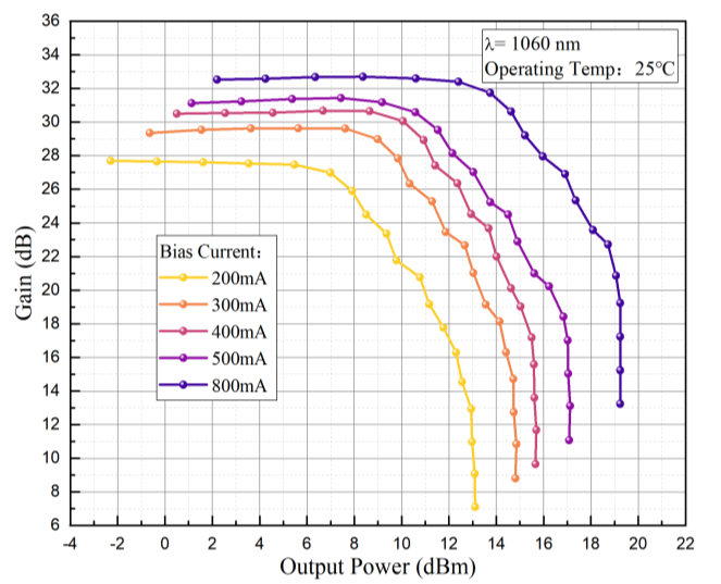 1060nm波段-15dBm饱和输出功率-25dB增益-蝶形封装-单模光纤-FC/APC接头