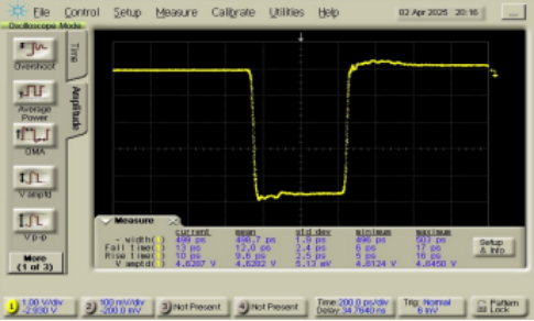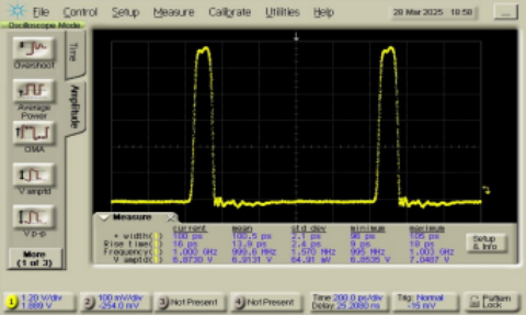 100ps脉宽 @时钟频率. 1GHz,输出电平 6.8Vpp |